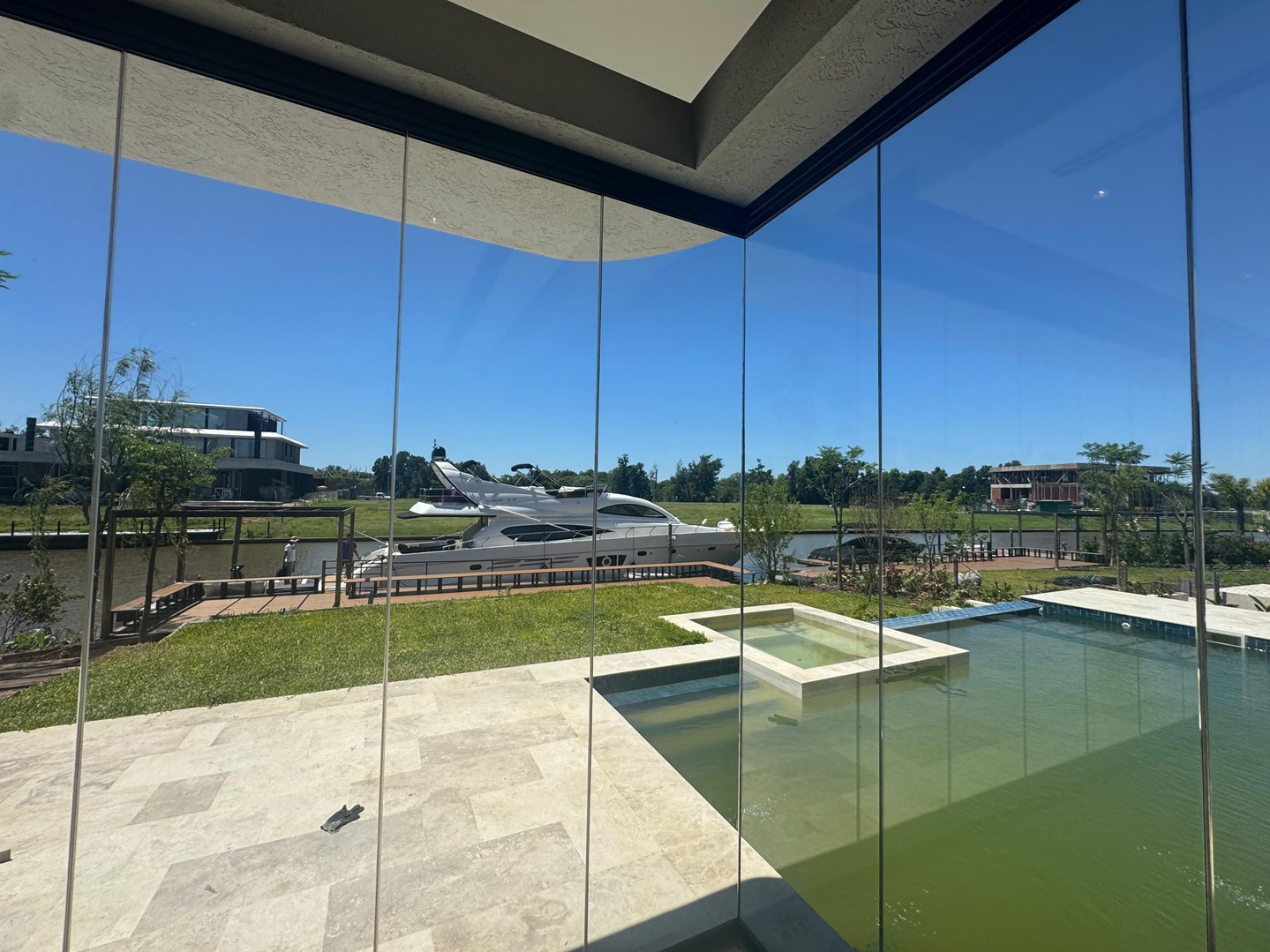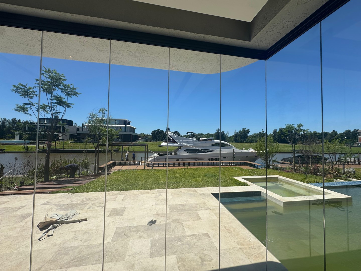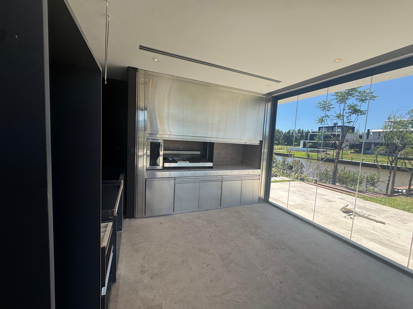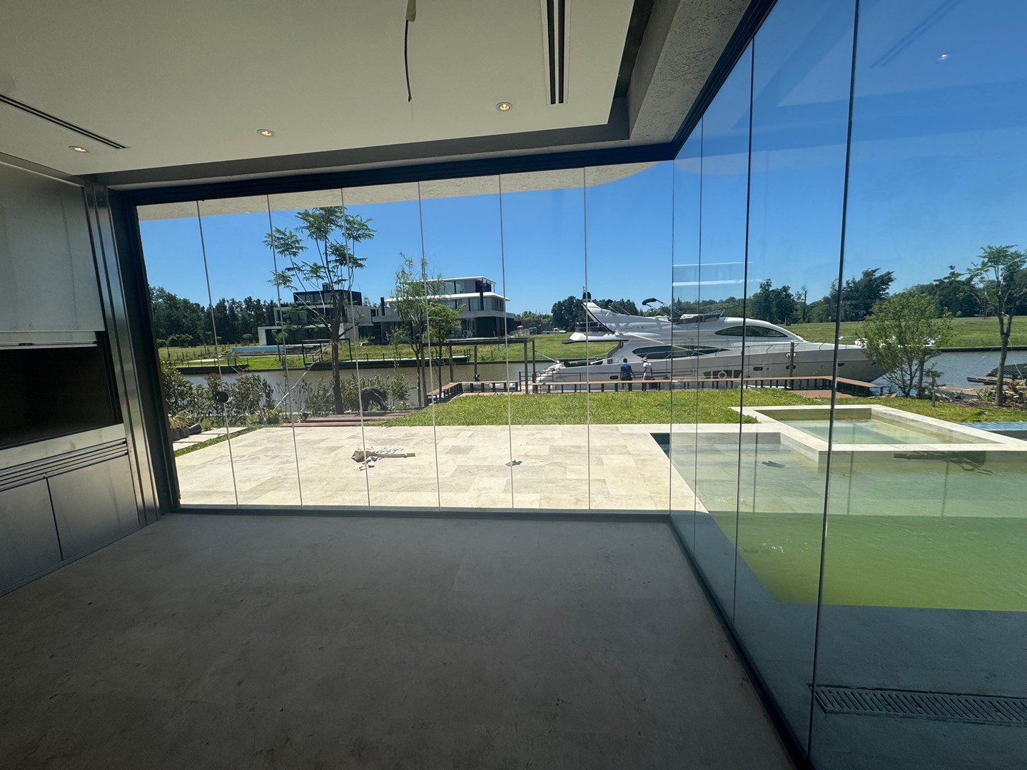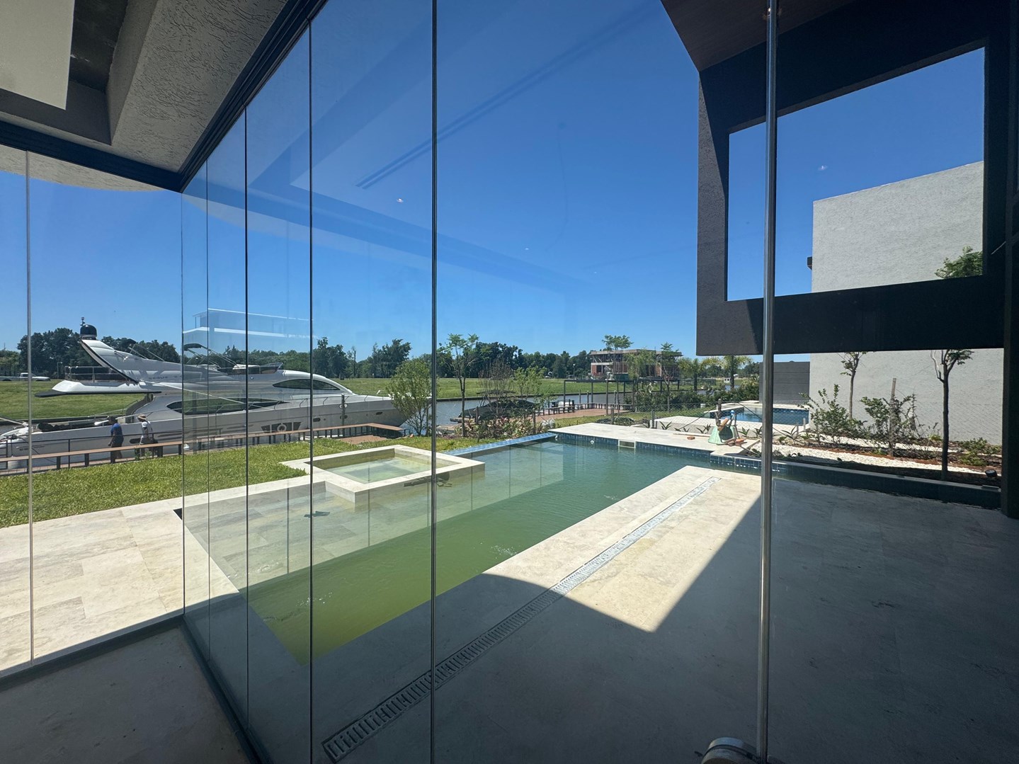 Importante Casa al agua a estrenar en el Barrio Yacht de Nordelta. En un Lote de 907 m² con inmejorable orientación NORTE y 550 m² construidos. De diseño moderno se destaca por sus líneas puras, doble altura vidriada y paisajismo integrado. Desarrollada en dos plantas Planta Baja: - Hall de recepción de doble altura con imponente escalera caracol. - Living–comedor con grandes ventanales que integran el interior con el jardín, el paisajismo y un estanque lateral. - Cocina con gran isla - Suite de huéspedes - Toilette - Dependencia de servicio y lavadero. - Galería con parrilla de acero inoxidable, barra y cerramiento reiki. Planta alta: - Gran hall de distribución ( con opción a segundo living o playroom) - Master suite de importantes dimensiones con vista al río - 3 Suites Jr. Exterior: - Piscina climatizada con playa húmeda. - Baño de piscina. - Jardín parquizado y fogón. - Muelle con amarra propia. - Cochera semicubierta para dos autos. Información adicional La casa cuenta con Losa radiante (Incluyendo en la galería) Aire acondicionado central sistema vrf de la empresa LG que cada ambiente puede graduar su temperatura. La entrada y los caminos laterales diseñados y revestidos Paisajismo y iluminación de exterior y interior Domótica Todas las habitaciones en suite Placares, puertas, ventanas, bajo mesadas y vanitorys de la empresa windoor Cocinas de la empresa Batista, totalmente equipadas con electrodomésticos panelables Revestimientos de la más alta calidad Cava de vinos